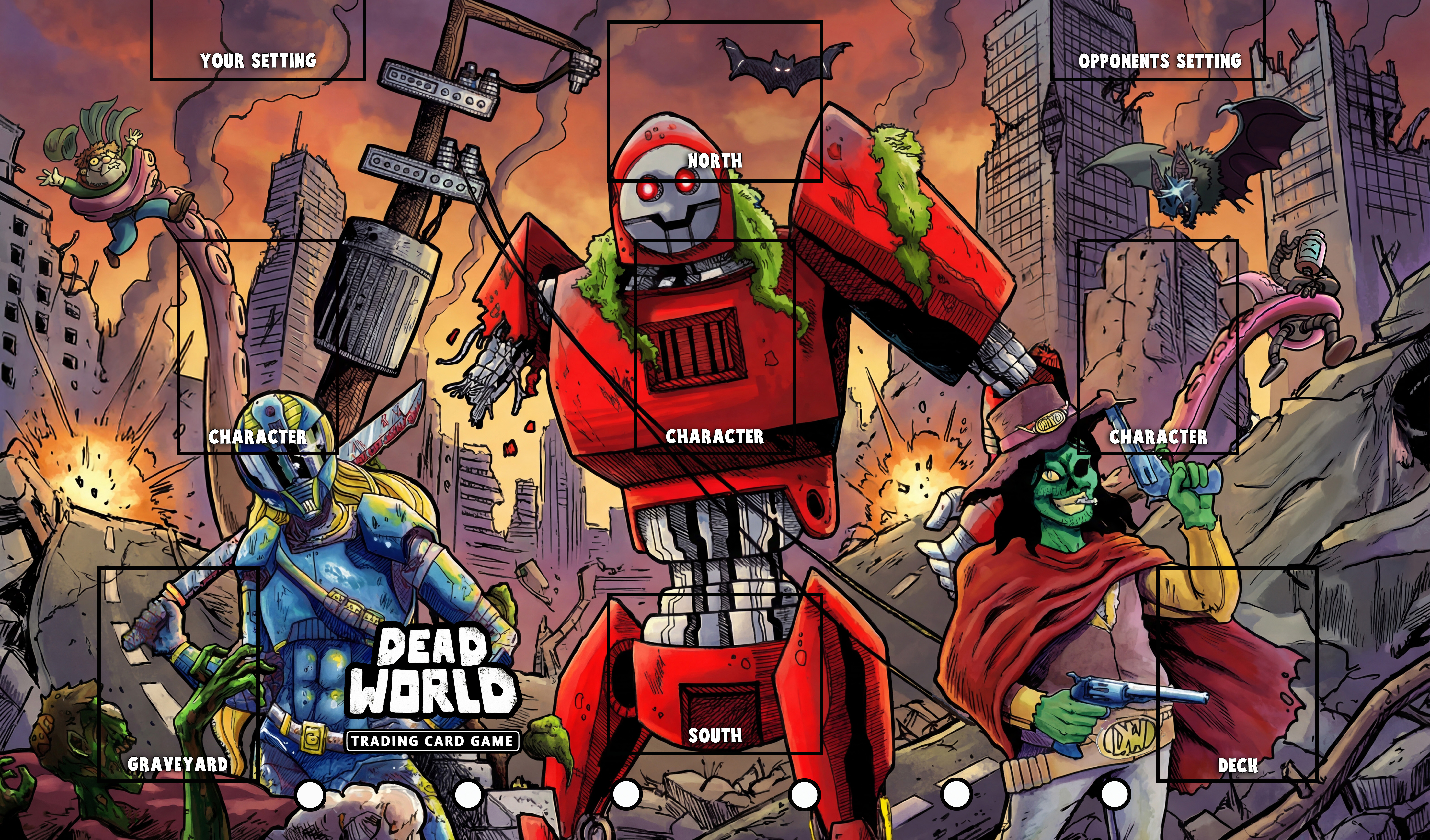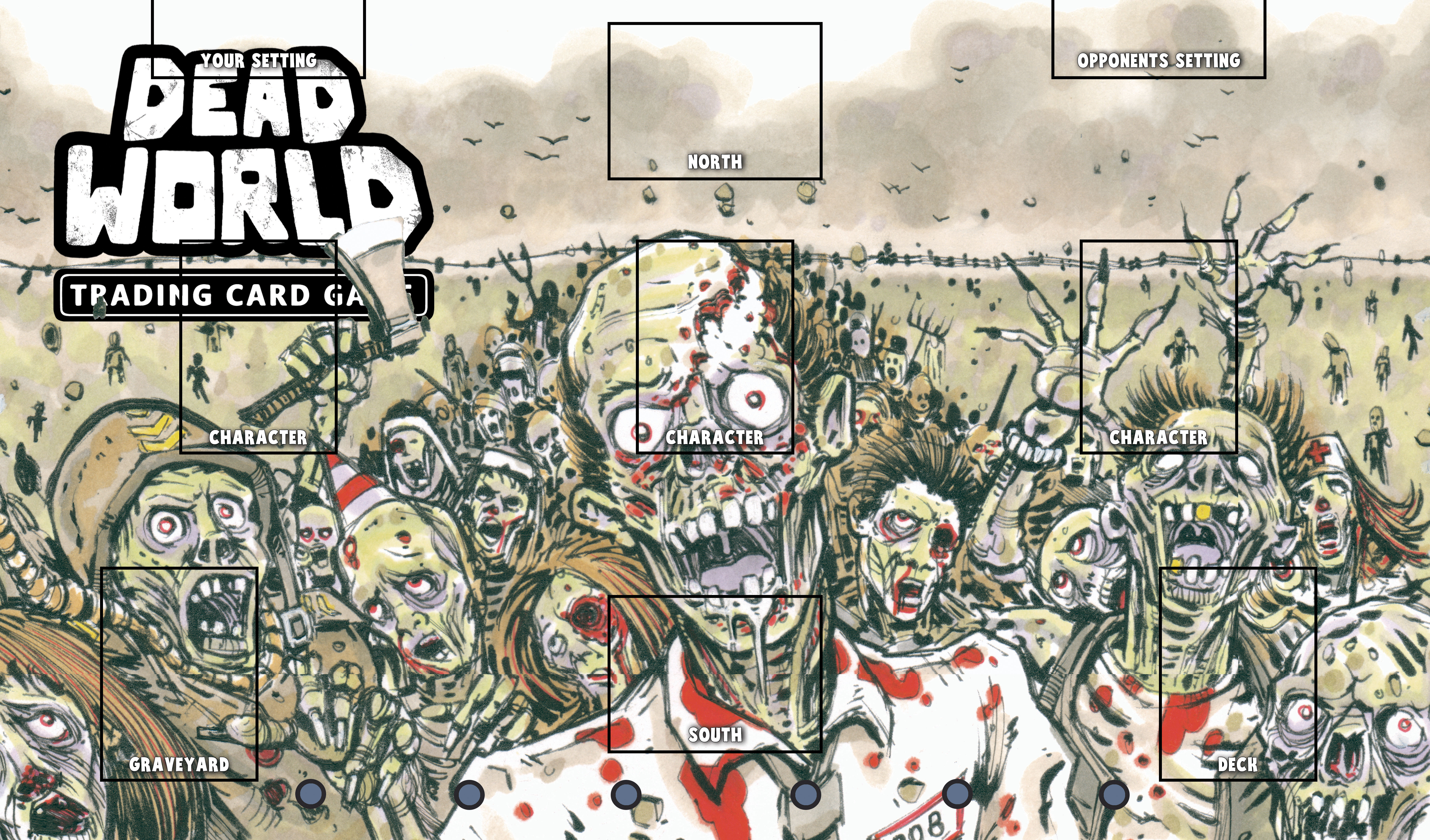 The Deck spot is where you place your main 30-card deck, and the Graveyard is where eliminated or used cards and items go, unless noted otherwise.